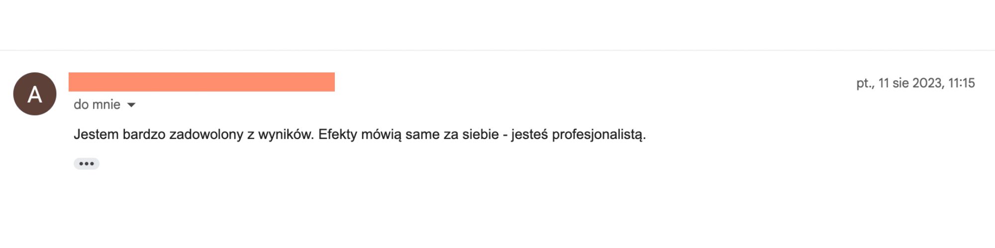 Dostaniesz ode mnie raporty dotyczące widoczności i prac przeprowadzonych na Twojej stronie. Wszystko to, abyś na każdym etapie współpracy był doskonale poinformowany.