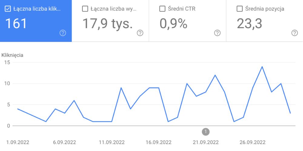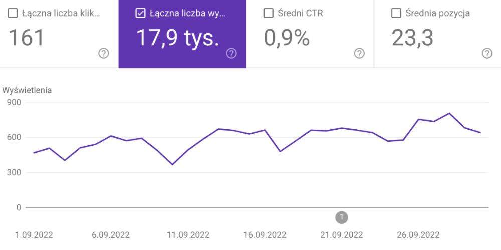 Wrzesień 2022 – 159 słów kluczowych w top 50 o łącznej liczbie wyszukiwań 9660.