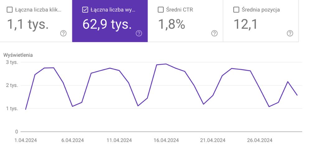 Kwiecień 2024 – 45 słów kluczowych w top 3 o łącznej liczbie wyszukiwań 4160!