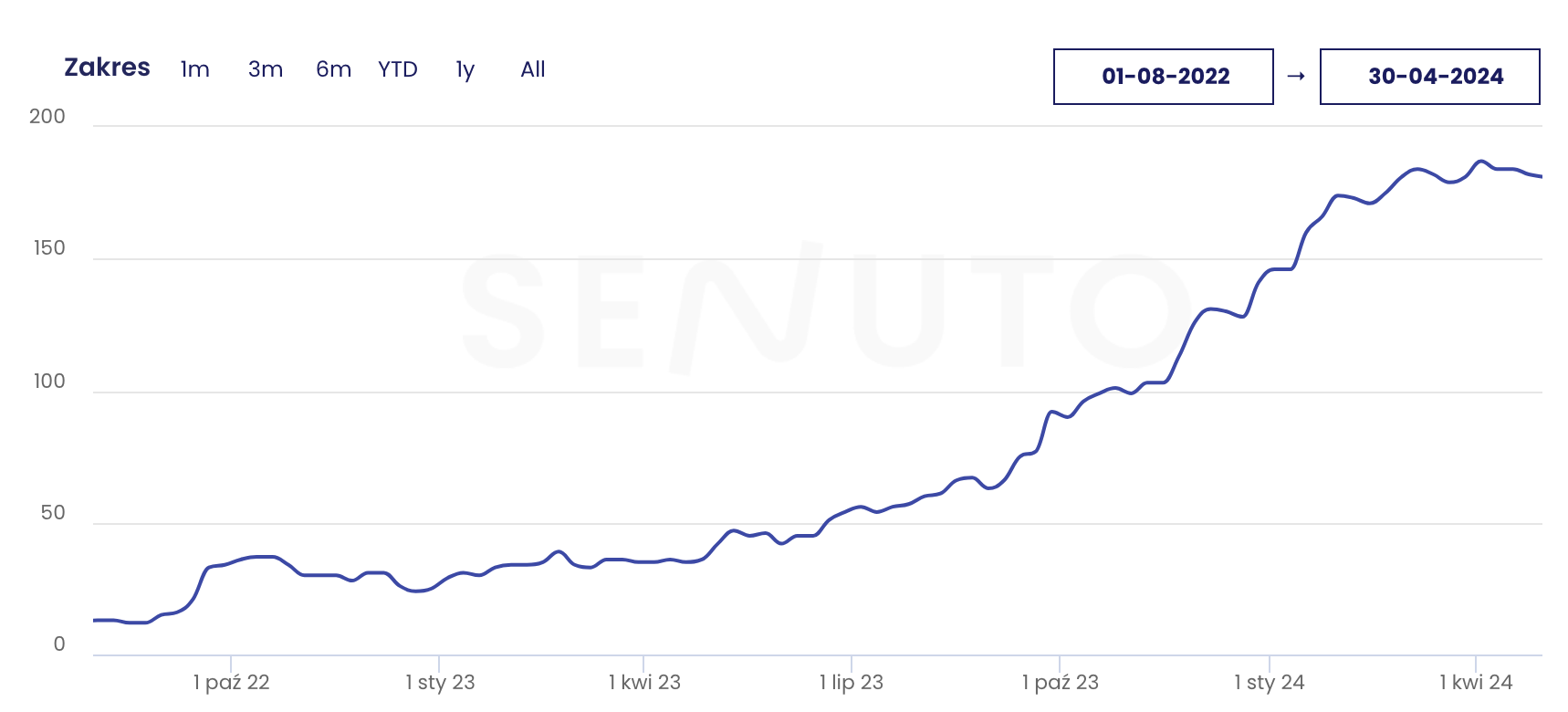 Kwiecień 2024 – 182 słów kluczowych w top 10 o łącznej liczbie wyszukiwań 13660