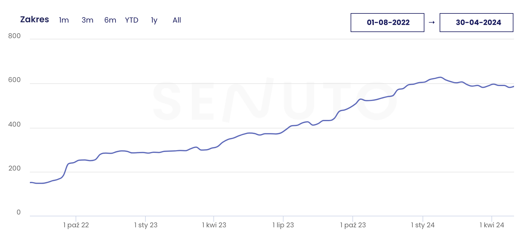 Kwiecień 2024 – 582 słów kluczowych w top 50 o łącznej liczbie wyszukiwań 54160.